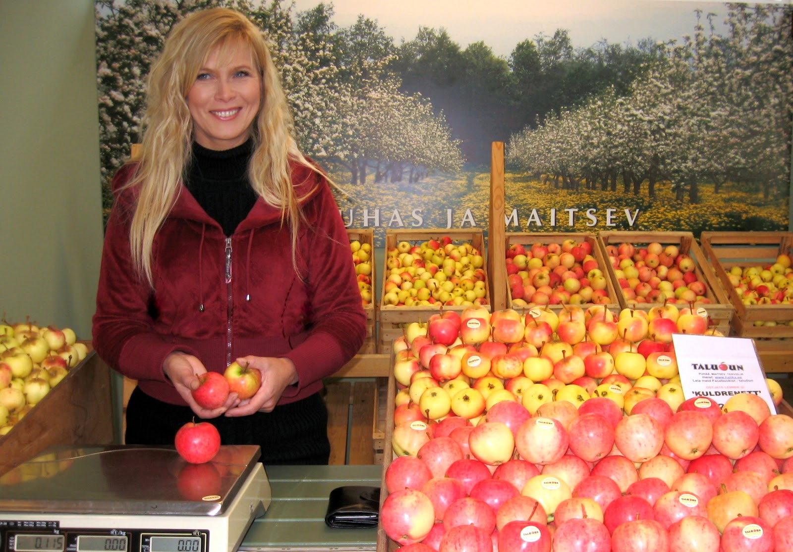 | Halika Õunatalu perenaine Ille Kasvand Nõmme turul. Räpina Vallas oma perega kasvatatud õunu müümas. |