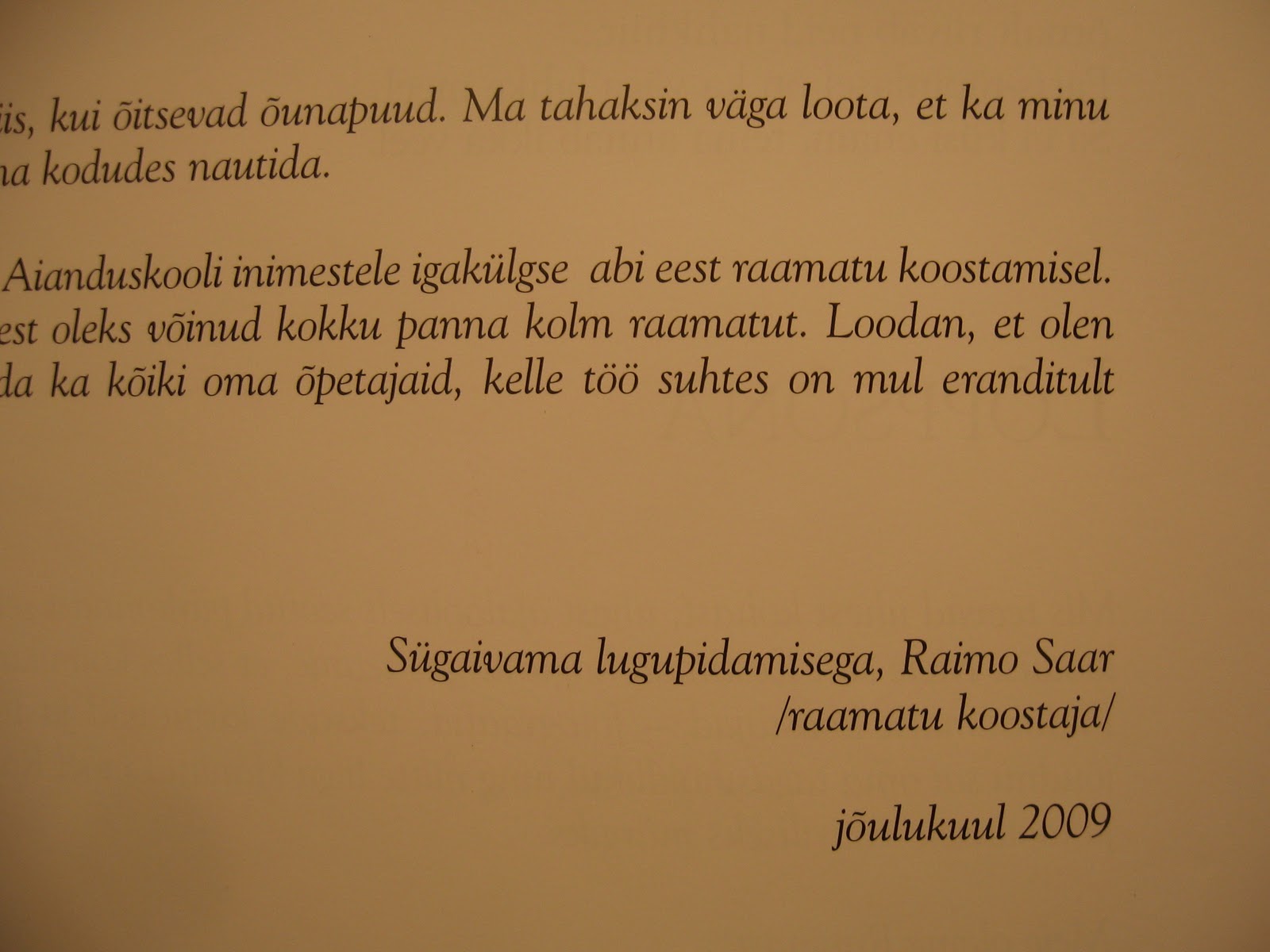 | Raamatu “Me oleme Räpinast” autori Raimo Saare pühendus viimasel lehel. Täieliku originaalteksti leiab raamatust 🙂 |
