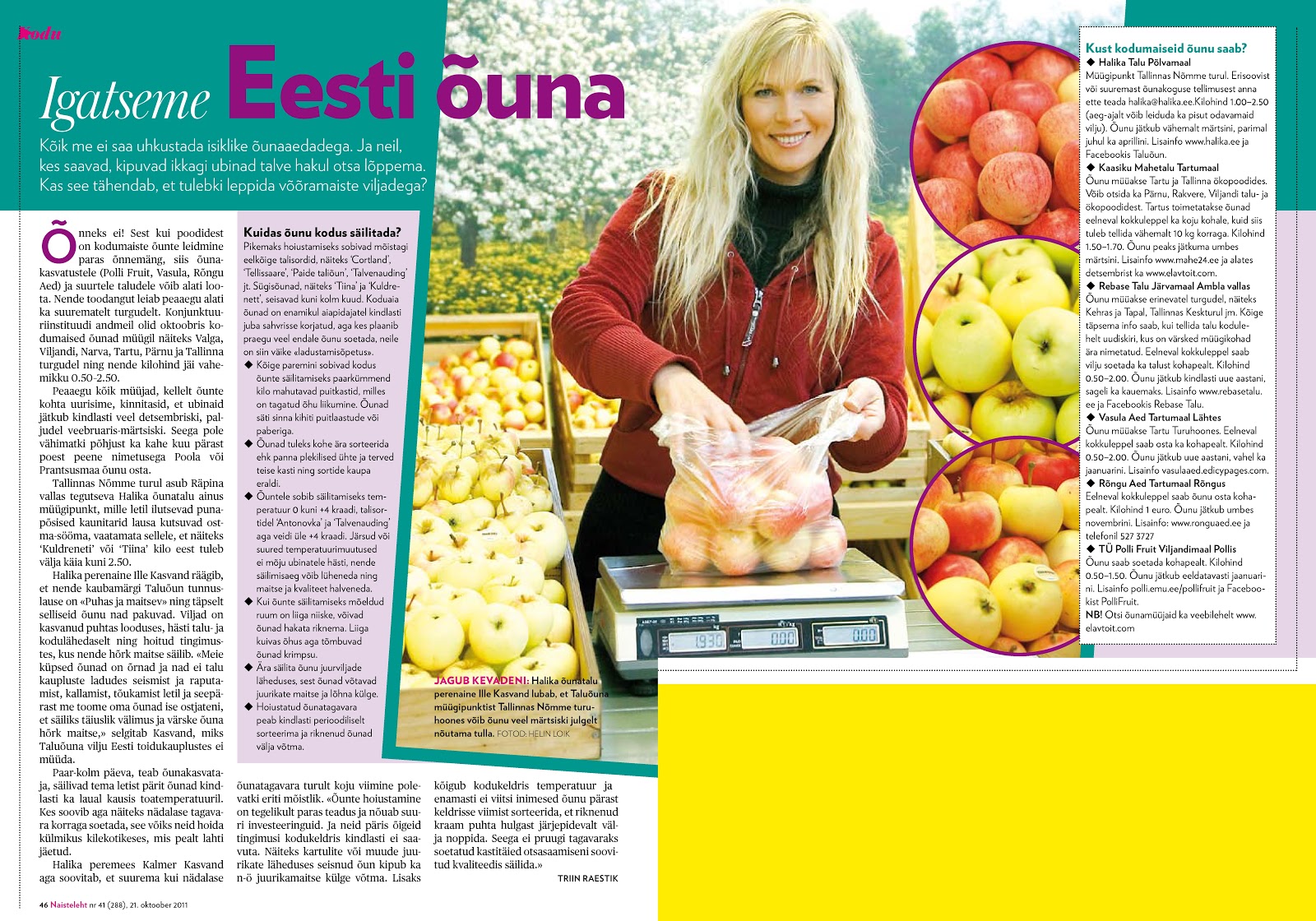 Meie osa selles ajakirjas oli lihtsalt tutvustada teiste Eesti õuna tootjate seas Halika talu õunte müügikohti ning millised on õunte kilohinnad, et inimesed teaksid varude lõppedes enne õunte ostmist valikuid teha.
