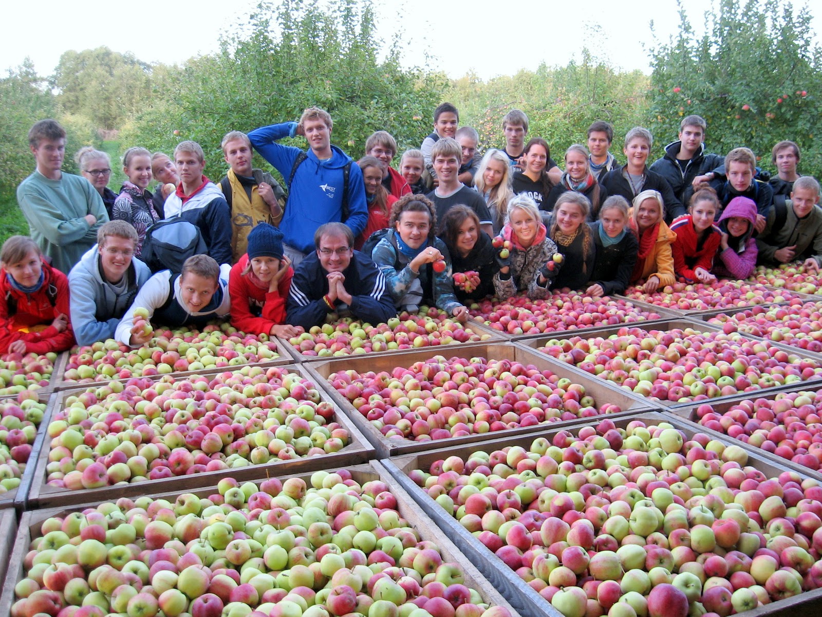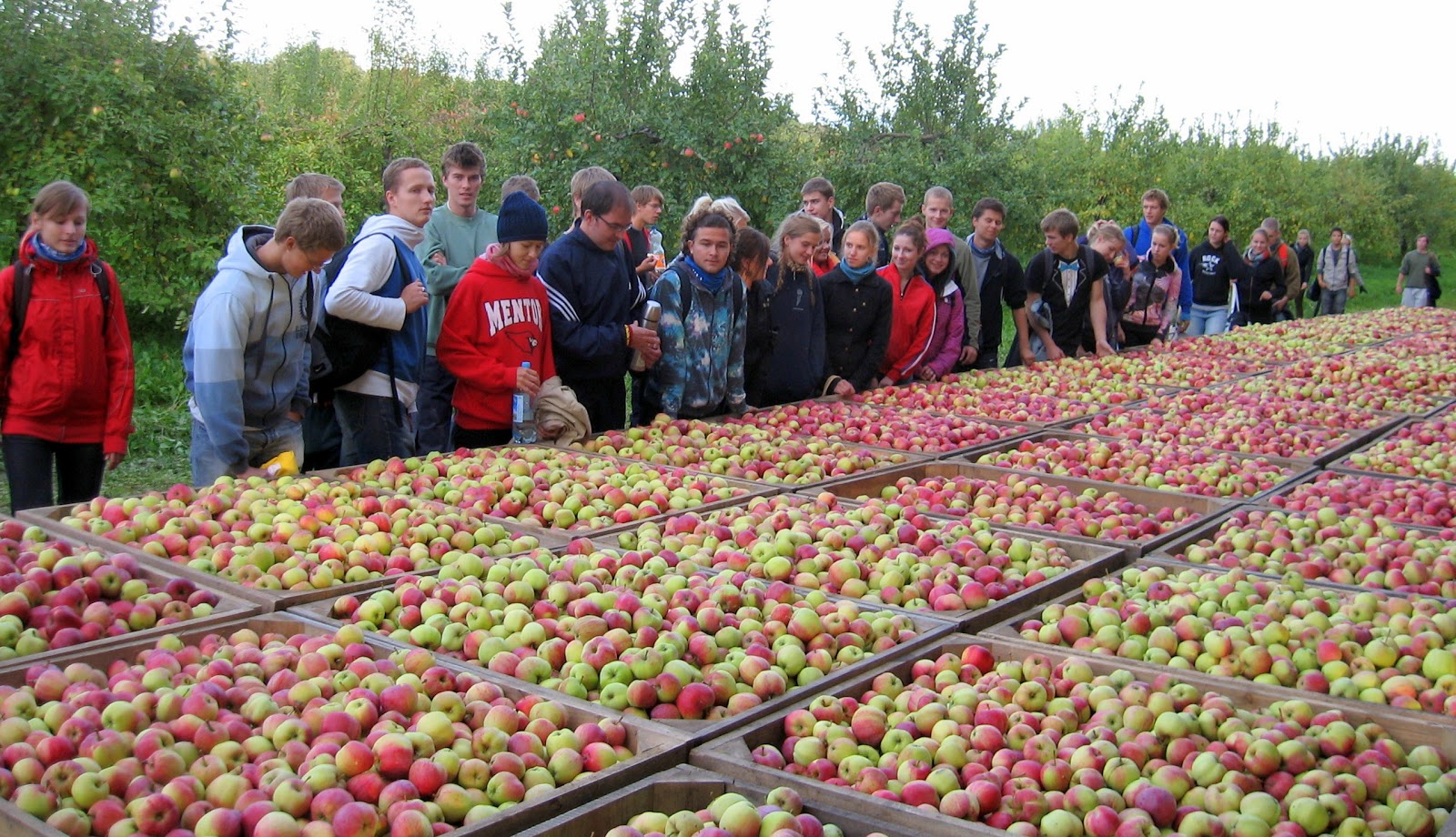 Meil oli talus tore talgupäev Tartu Hugo Treffneri Gümnaasiumi noorte tantsurühmaga “Tantsutallad” Tantsutaldasid juhendab Uve Saar, kes on olnud juba teist aastat järjest lahkesti nõus meile oma superlahedate tantsijatega appi tulema. Meie pojad Alari ja Lauri tantsivad samas tantsukollektiivis vilistlastena. Õunaaias olid nad seekord suurte kogemustega juhendajad ja organiseerijad. Kohal oli väga suur rühm tublisid noori, kes olid nõus looduses töötades tööpraktikat saama ja üheskoos midagi kasulikku tegema. Iga ühine üritus on lahe ja sellises kollektiivis peitus väga suur jõud. Lisaks tantsijate treenitavatele tantsulihastele arendati üheskoos ka õunakorjamise lihast 🙂 Me ei kuulnud terve päeva jooksul ühtegi nurinat vaid lausa vastupidi, õunaaed rõkkas naerupahvakatest. Halika talu kiidab ja tänab abi eest ning meil on siiralt hea meel, et te kõik saite tulla siia mitte puhkama ega pidutsema, vaid üheskoos tööle 🙂 Väga armsad olete !!!