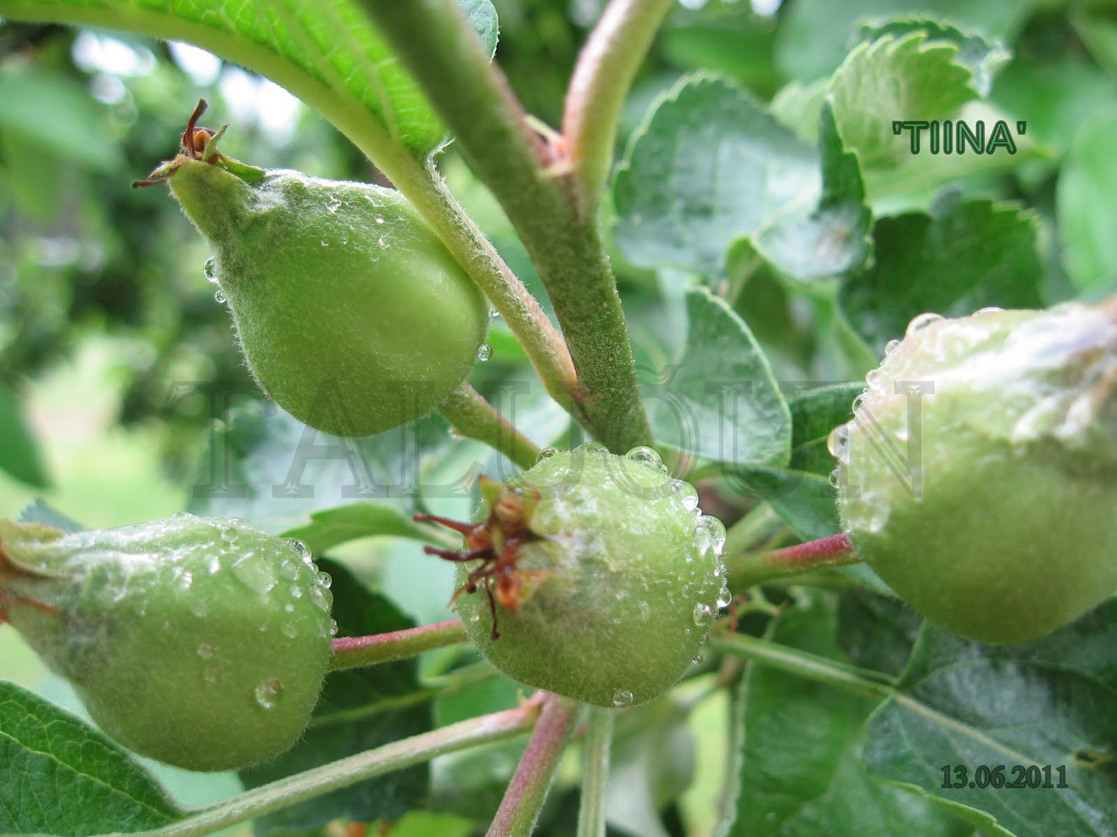 Põnev on jälgida, kuidas looduse imed sünnivad. On kevad, lumi sulab, imeline päike meelitab pungadest välja kaunid ja lõhnavad õied. Õiekroonlehed pudenevad, algab viljade küpsemise aeg. Pisikesed õunahakatised sirutavad end algul toredasti taeva poole kuid hiljem jäävad neist tugevamad alles ja nad vajuvad raskusega allapoole. Sel aastal oli meie aias jälle õisi väga palju, nagu igal aastal. Pärast õitsemist käisime aias jälgimas, millised sordid viljusid rohkem, millised vähem. Viljumine oleneb aedniku tähelepanelikkusest, oskustest ja ka ilmastikust tulenevatest põhjustest, suur ja tähtis roll on mesilastel. Paljud magusad, pehmed, mahlased õiealgmed nosib ära õielõikaja ja õunamähkur. Õunakoi ja kärntõbi ründavad halastamatult. Sellised kahjustatud õunakesed kukuvad maha. Mõni õun jääb täppidega 🙂 Ka regulaarne kastmisvesi ja viljakas maa on üliolulised.