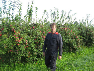| Kalmer Räpina aias oma lõigatud puude juures |