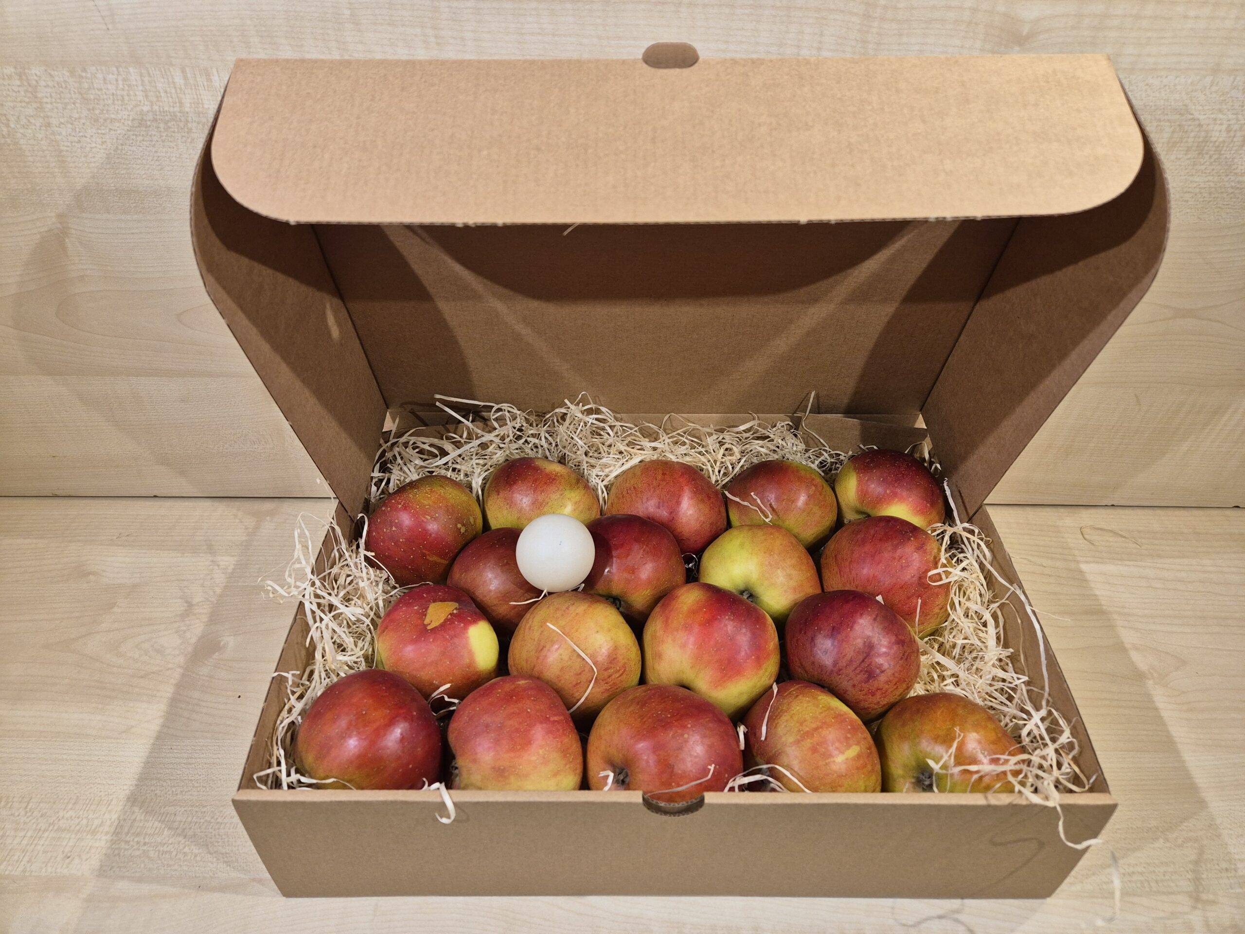 Pane tähele! Pildil on karbis 2 kg õuna.
